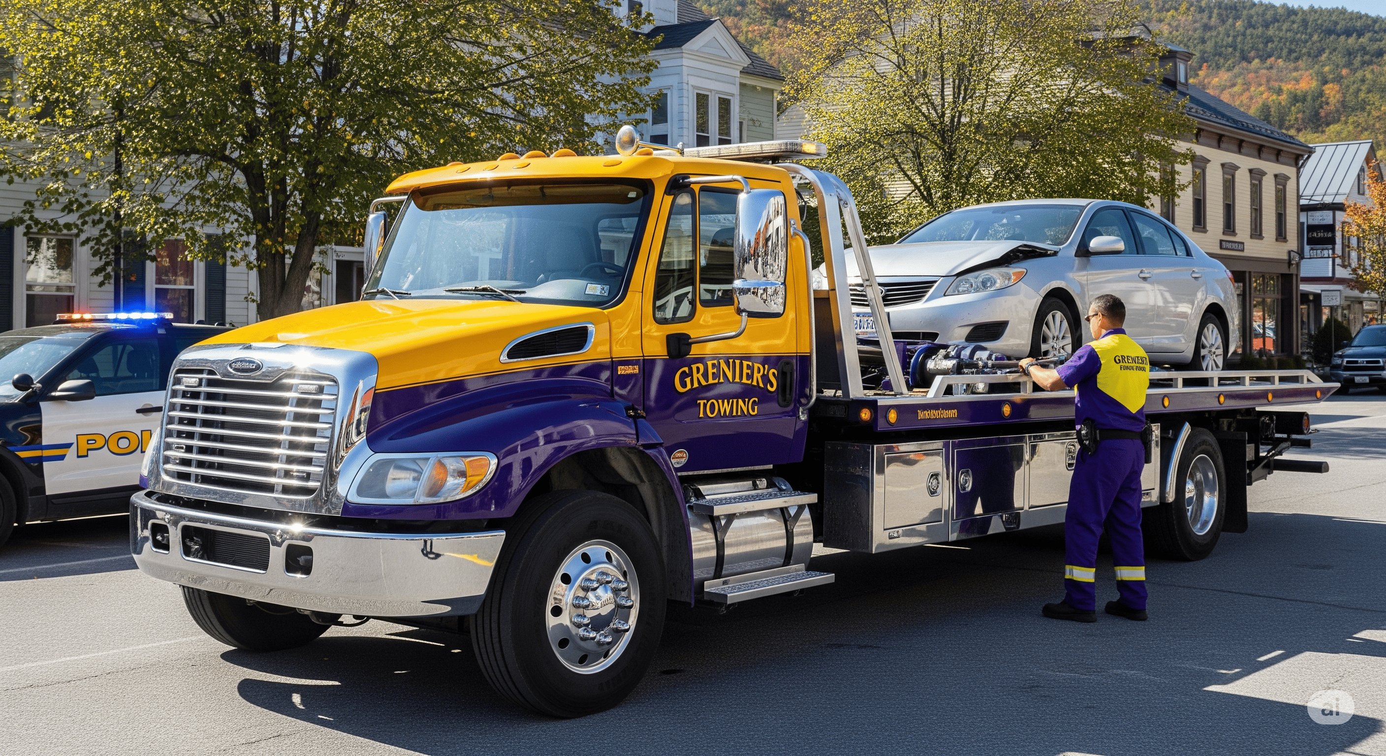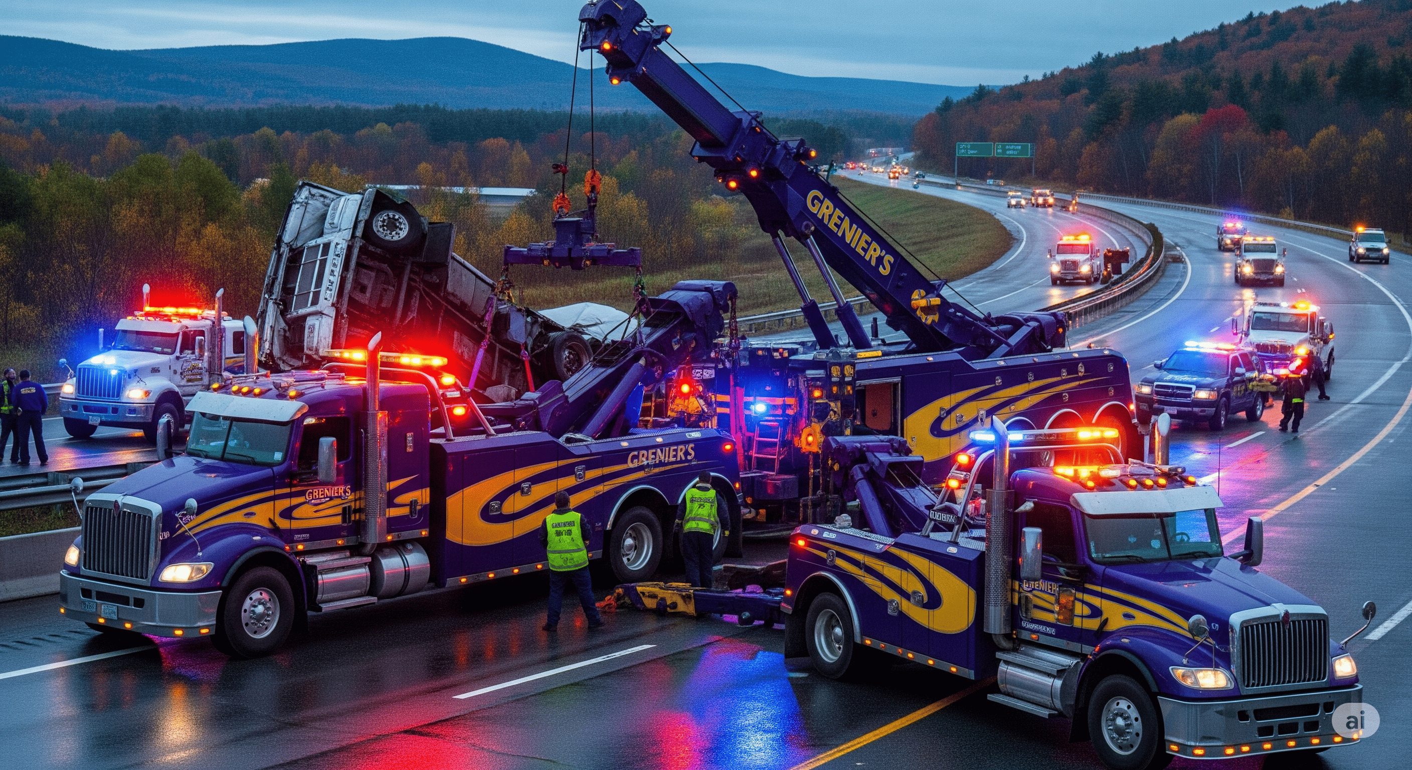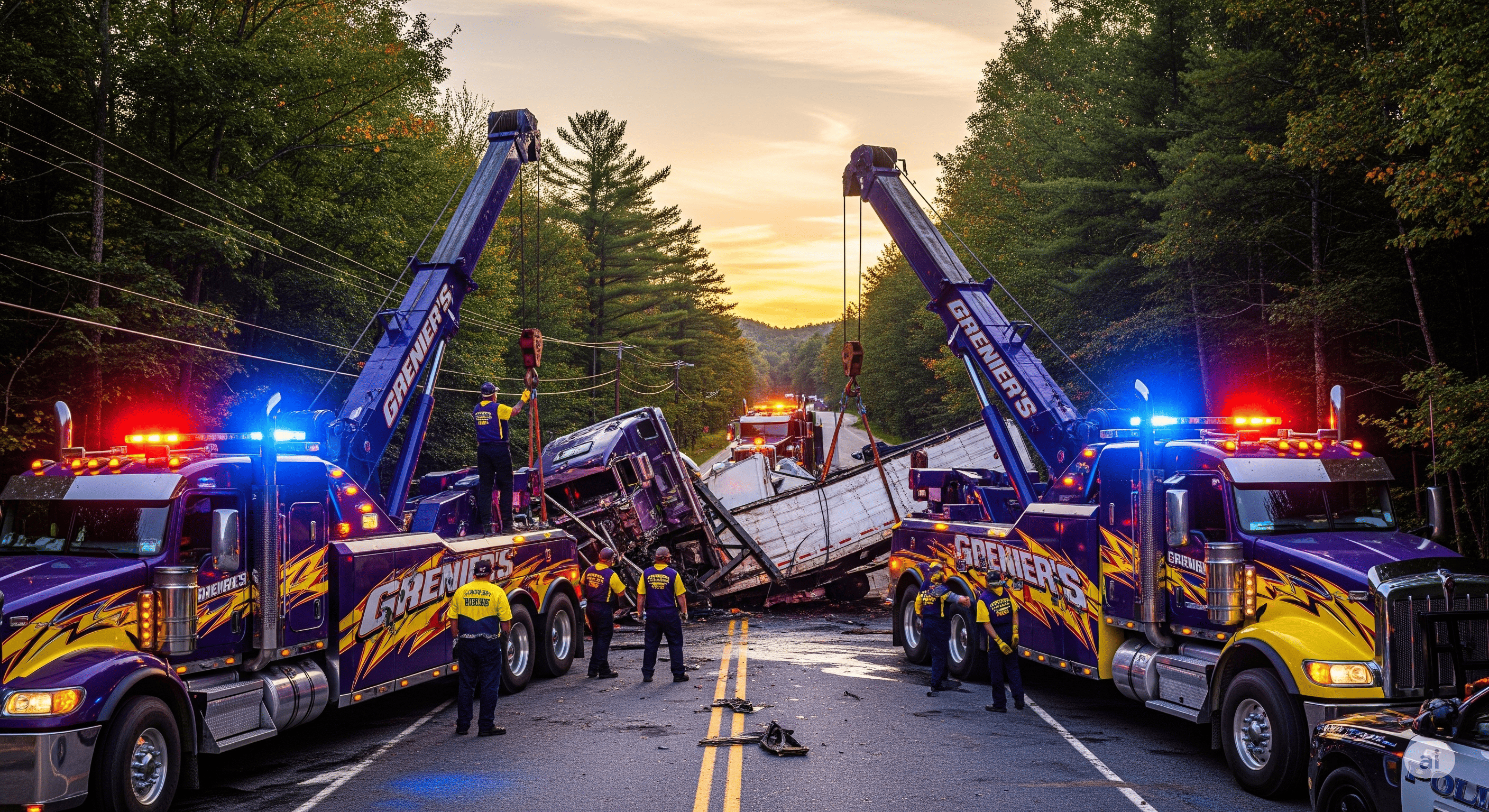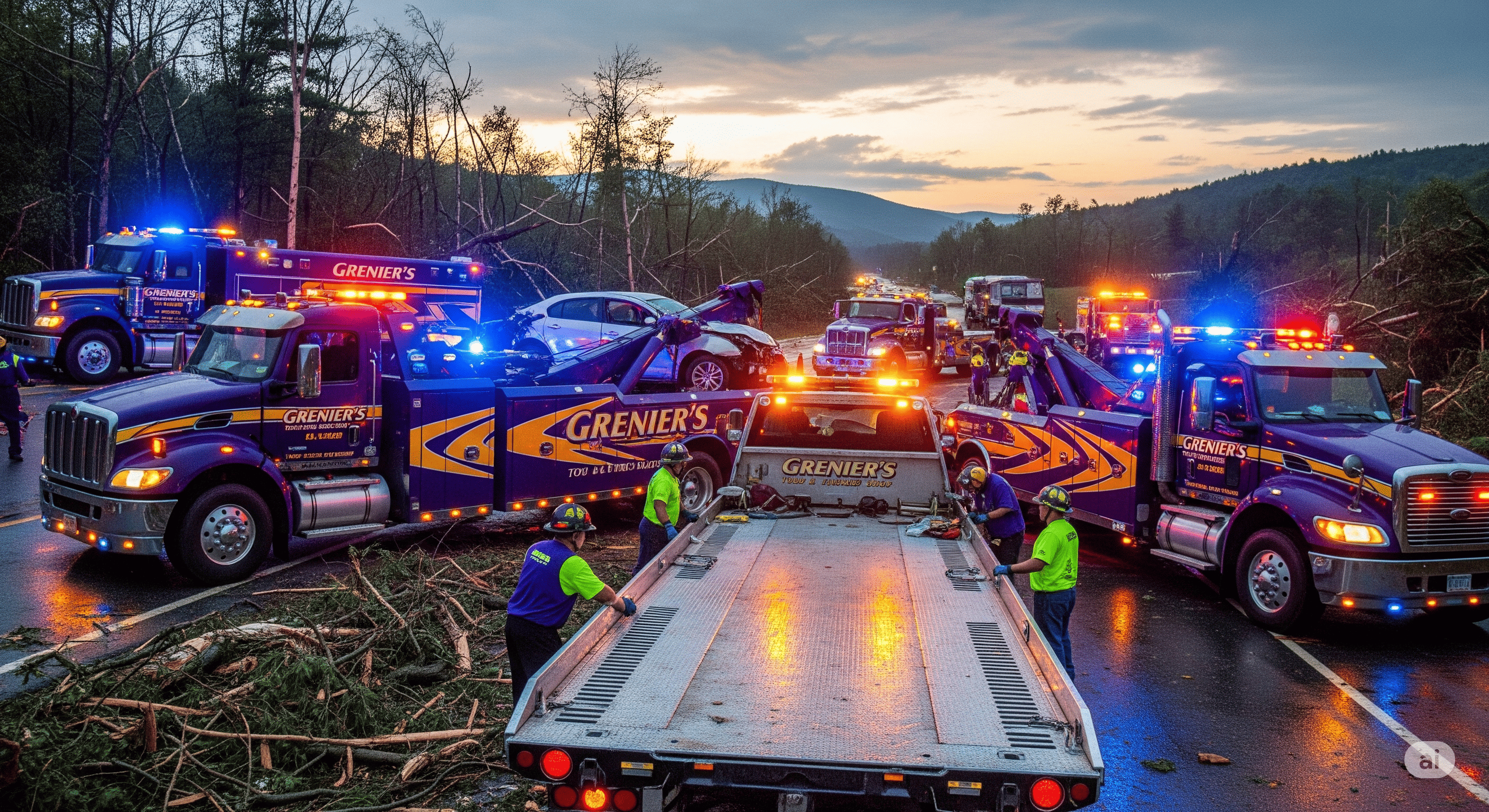 Grenier's Towing & Truck Shop is equipped with a robust fleet of heavy-duty wreckers, rotators, and flatbeds to handle accident towing and recovery for all vehicle types, including cars, trucks, RVs, and motorcycles. As an AAA-approved provider, we ensure damage-free recovery, trusted by major insurance companies across Vermont and New Hampshire.