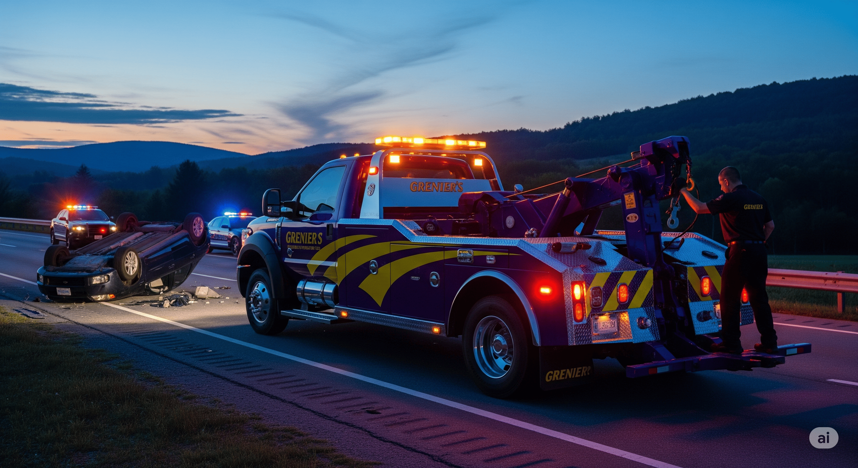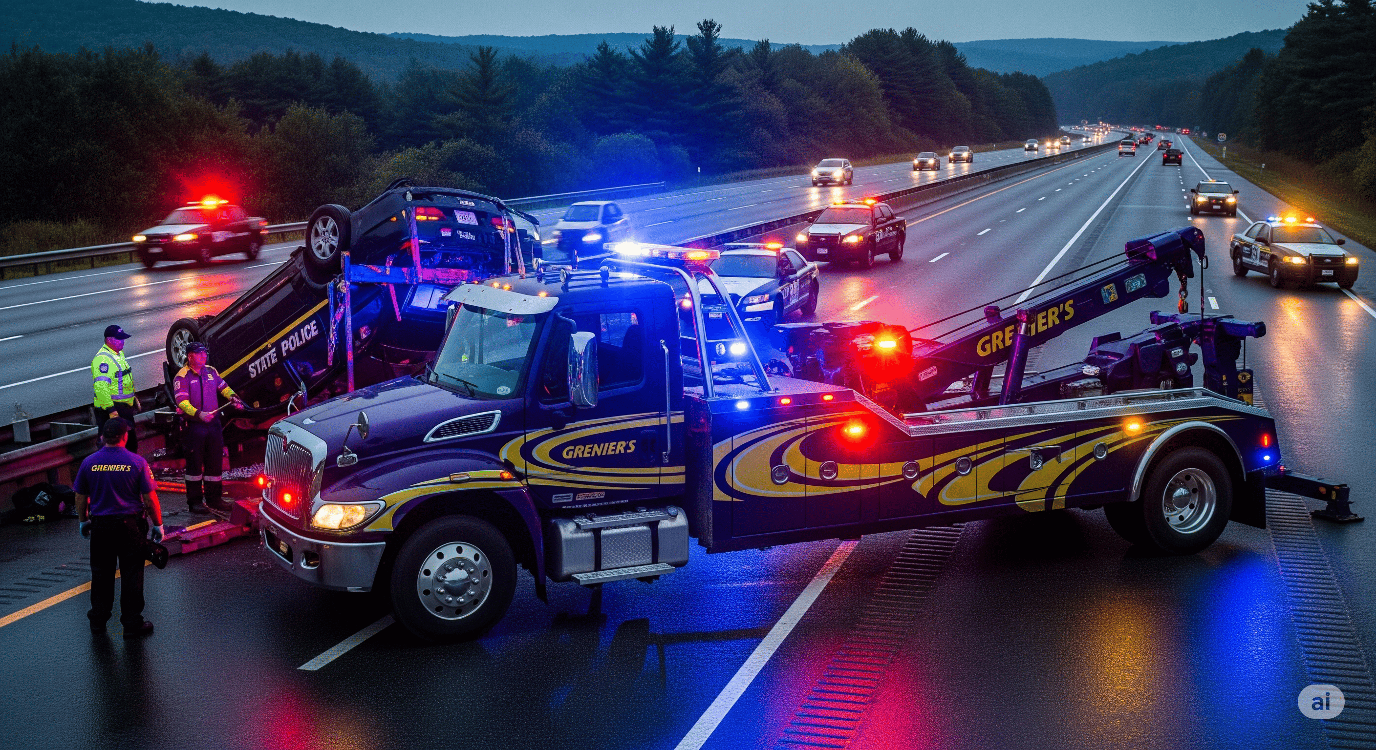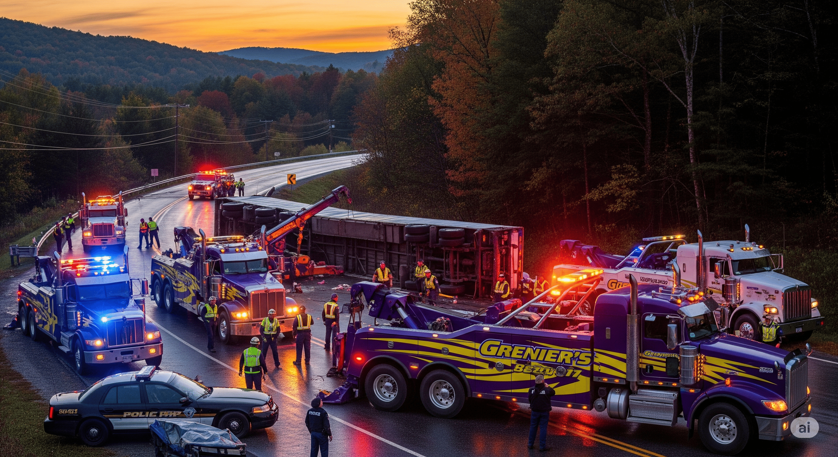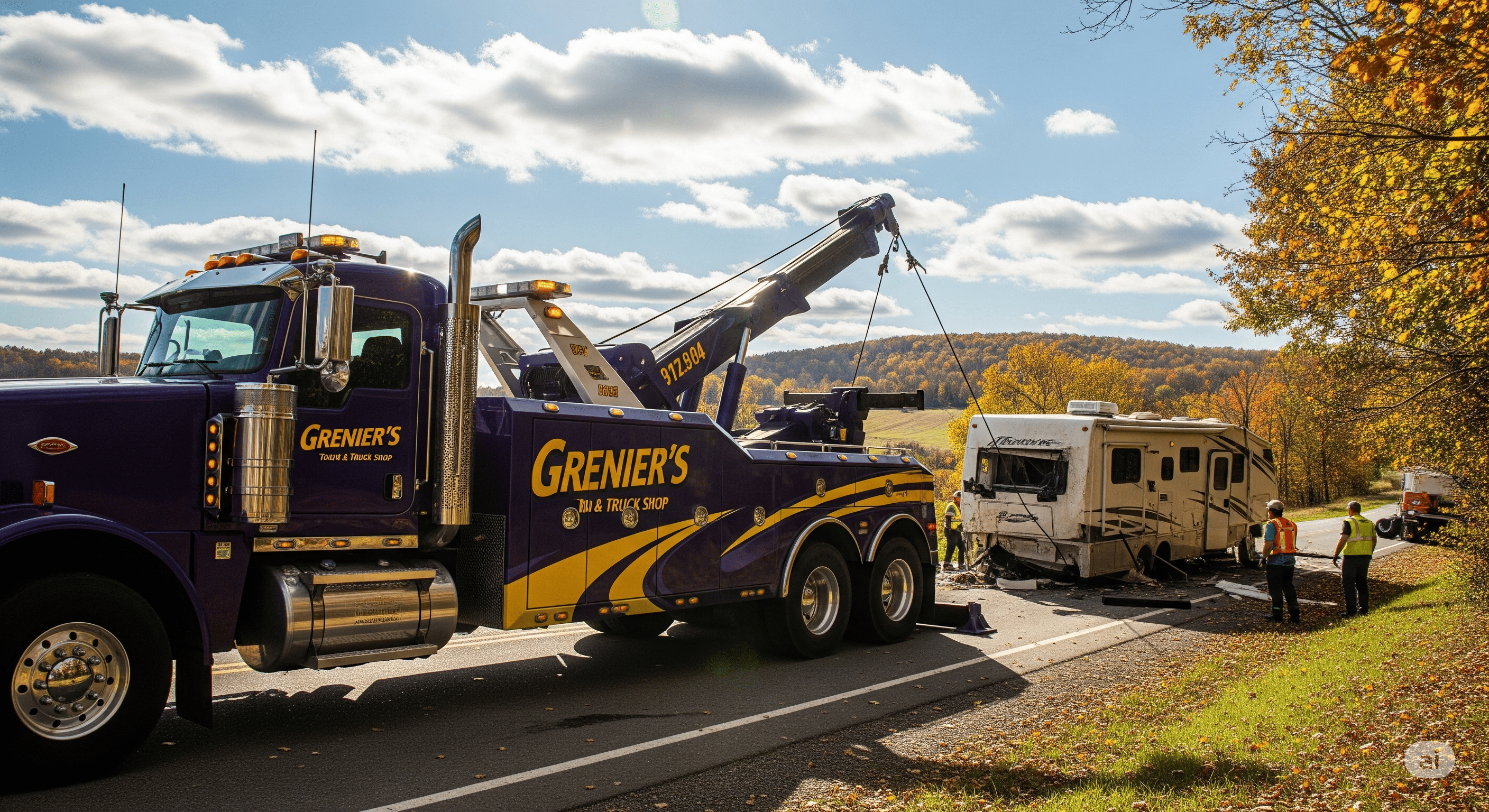 Grenier's Towing & Truck Shop is equipped with a robust fleet of heavy-duty wreckers, rotators, and flatbeds to handle accident towing and recovery for all vehicle types, including cars, trucks, RVs, and motorcycles. As an AAA-approved provider, we ensure damage-free recovery, trusted by major insurance companies across Vermont and New Hampshire.