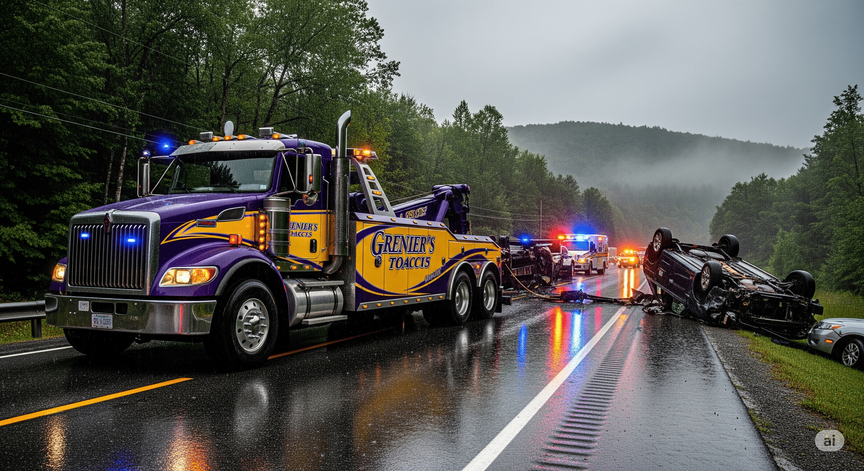 Specialized collision recovery for rural and storm-impacted areas, specializing in roadside assistance Vermont in Caledonia County towing and Lamoille County towing.