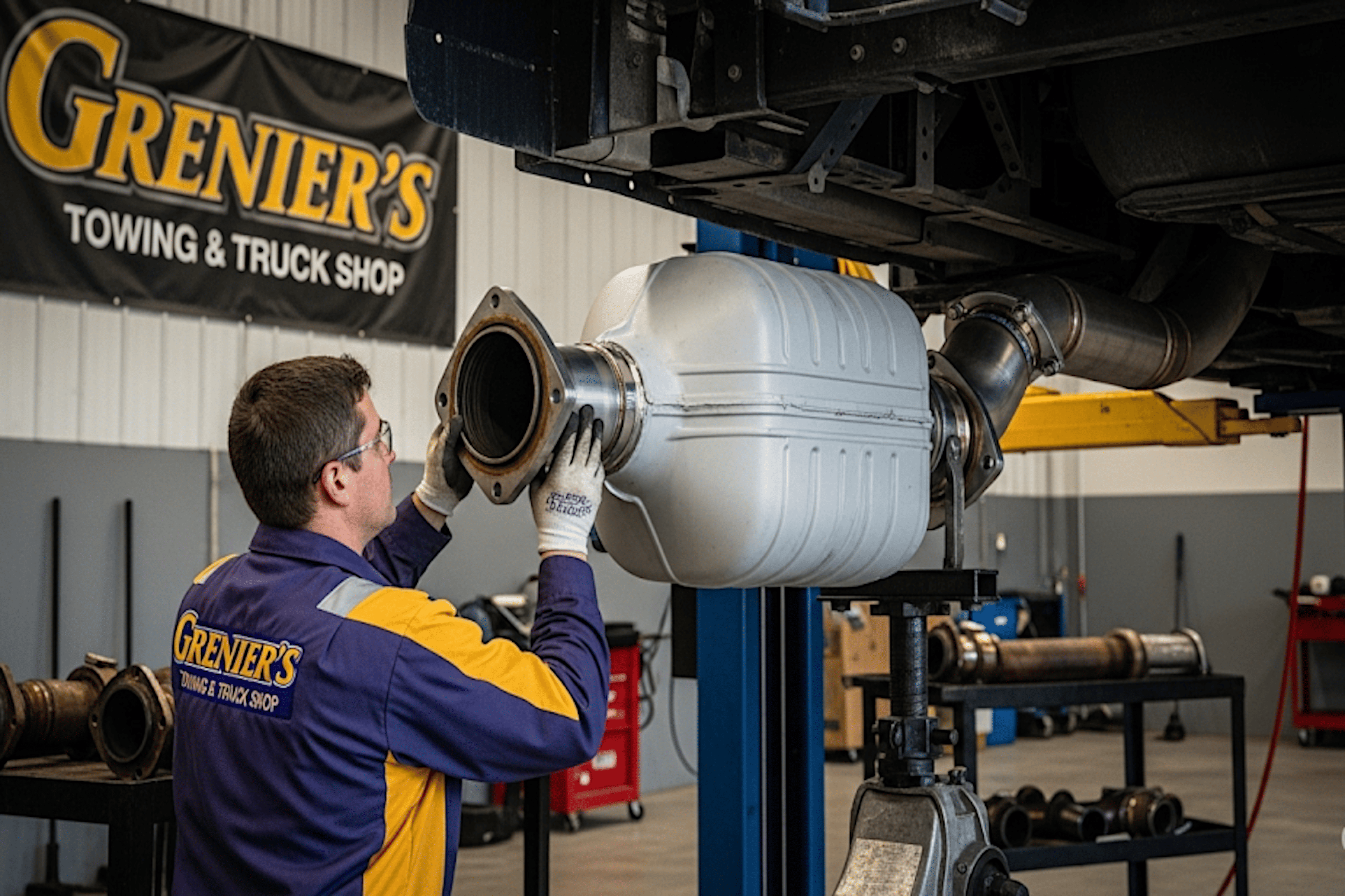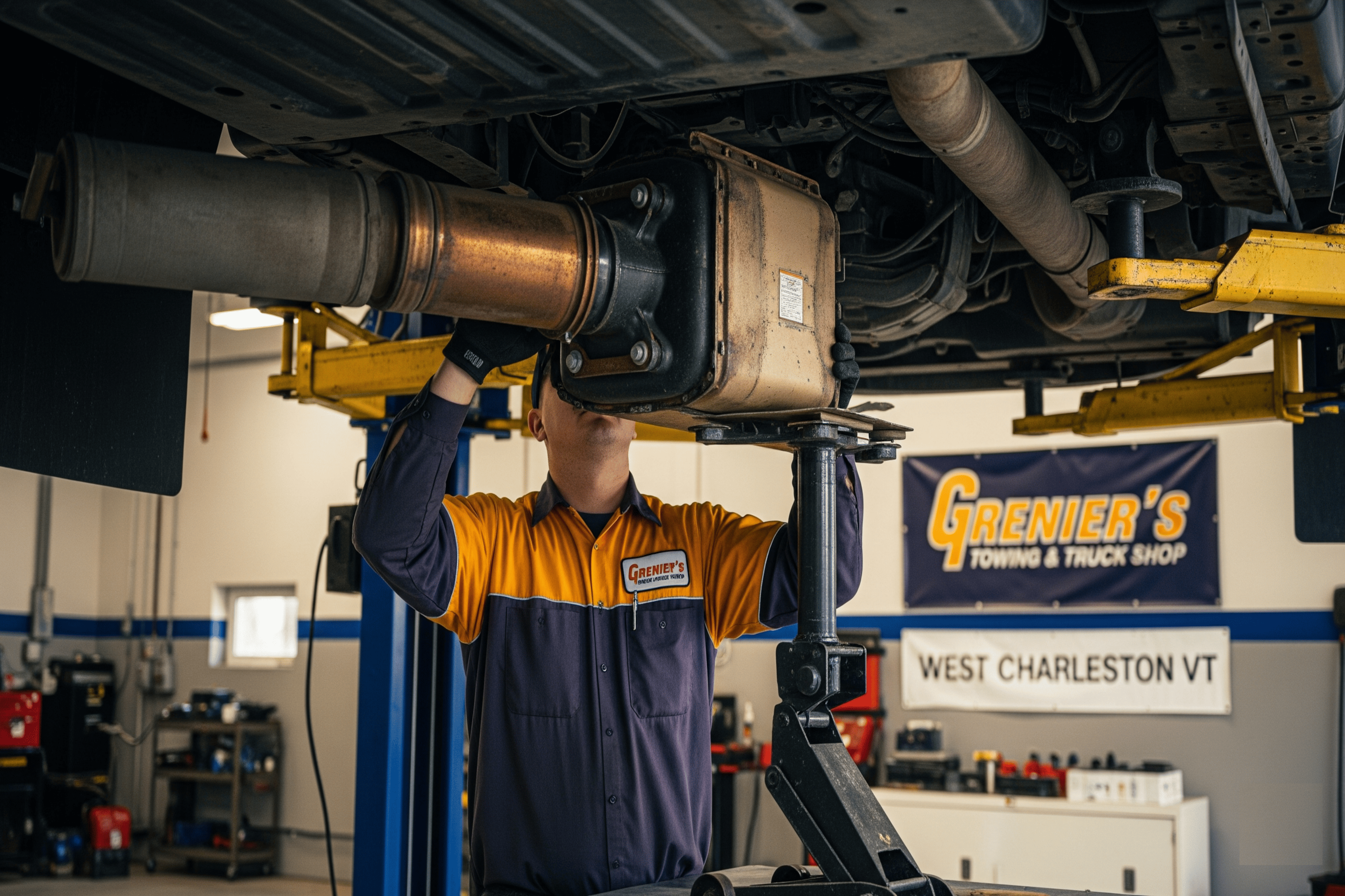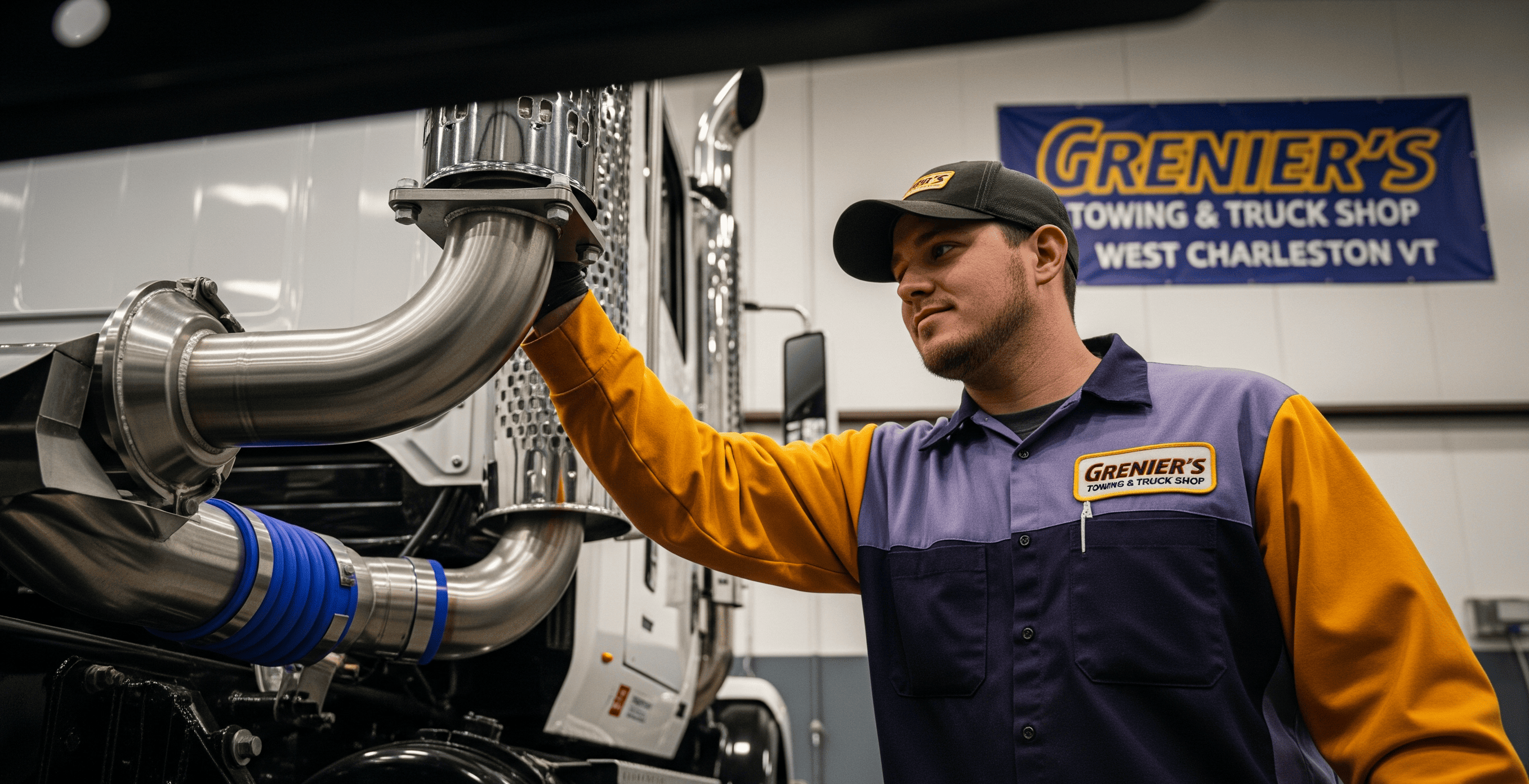 At Grenier's Towing & Truck Shop in West Charleston, VT, we provide advanced exhaust system and DPF services for heavy-duty vehicles. With over 20 years of expertise, our skilled technicians use state-of-the-art tools to repair and maintain exhaust systems, ensuring compliance and performance across Vermont and New Hampshire, including Orleans, Essex, Caledonia, Lamoille, and Washington Counties, as well as towns like Laconia and Meredith.