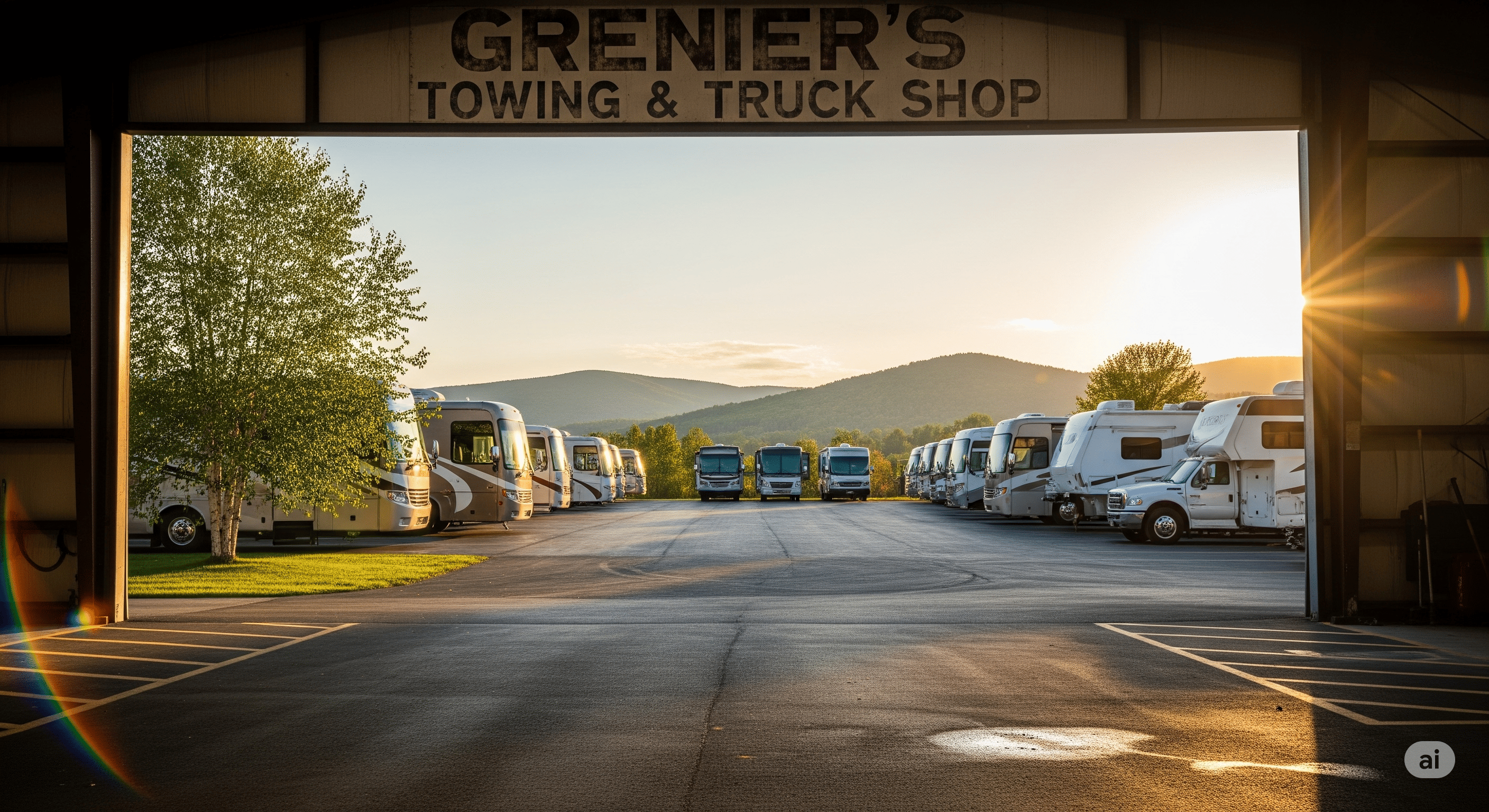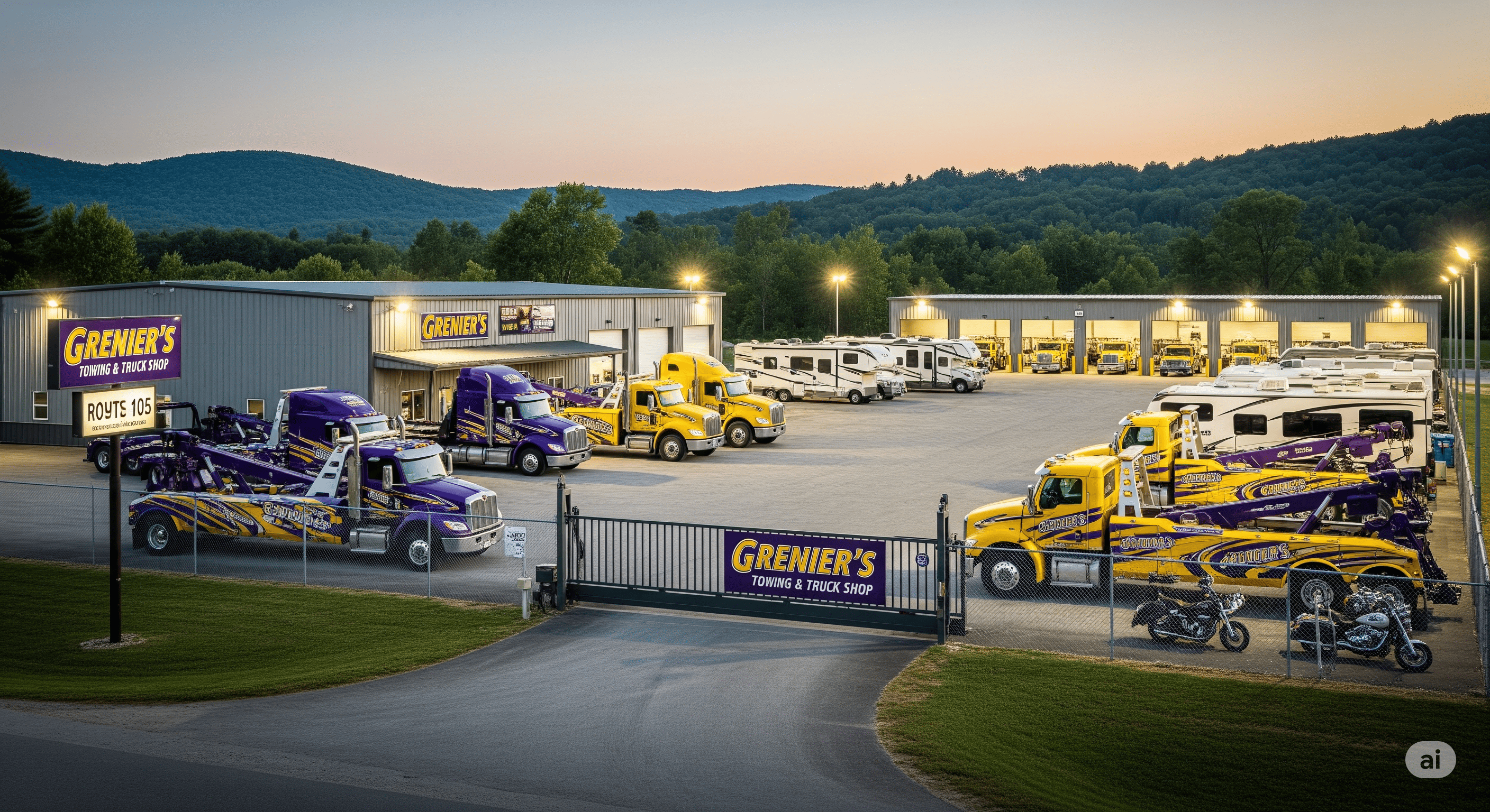 Grenier's Towing & Truck Shop provides secure per-night vehicle storage solutions in West Charleston, VT. With over 20 years of experience as an AAA-approved provider, our facilities are equipped with 24/7 surveillance and access control to protect your car, SUV, motorcycle, RV, or heavy truck.