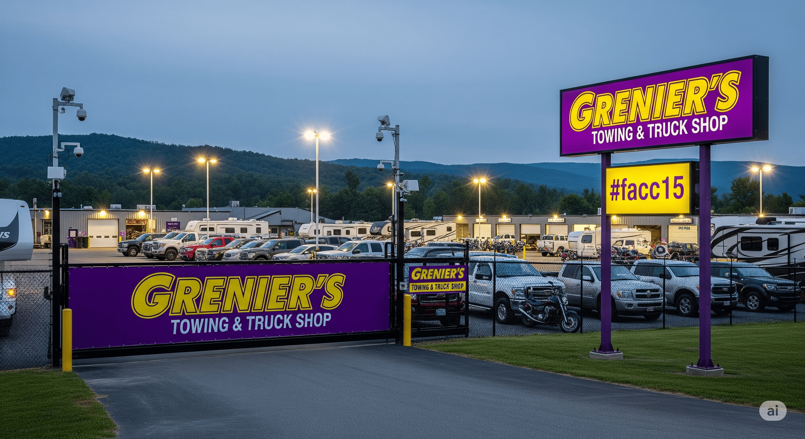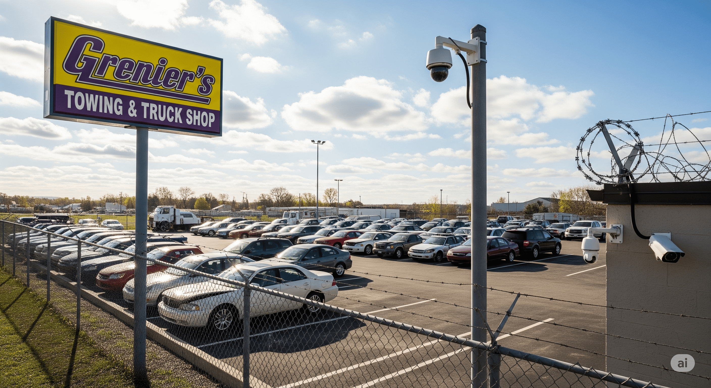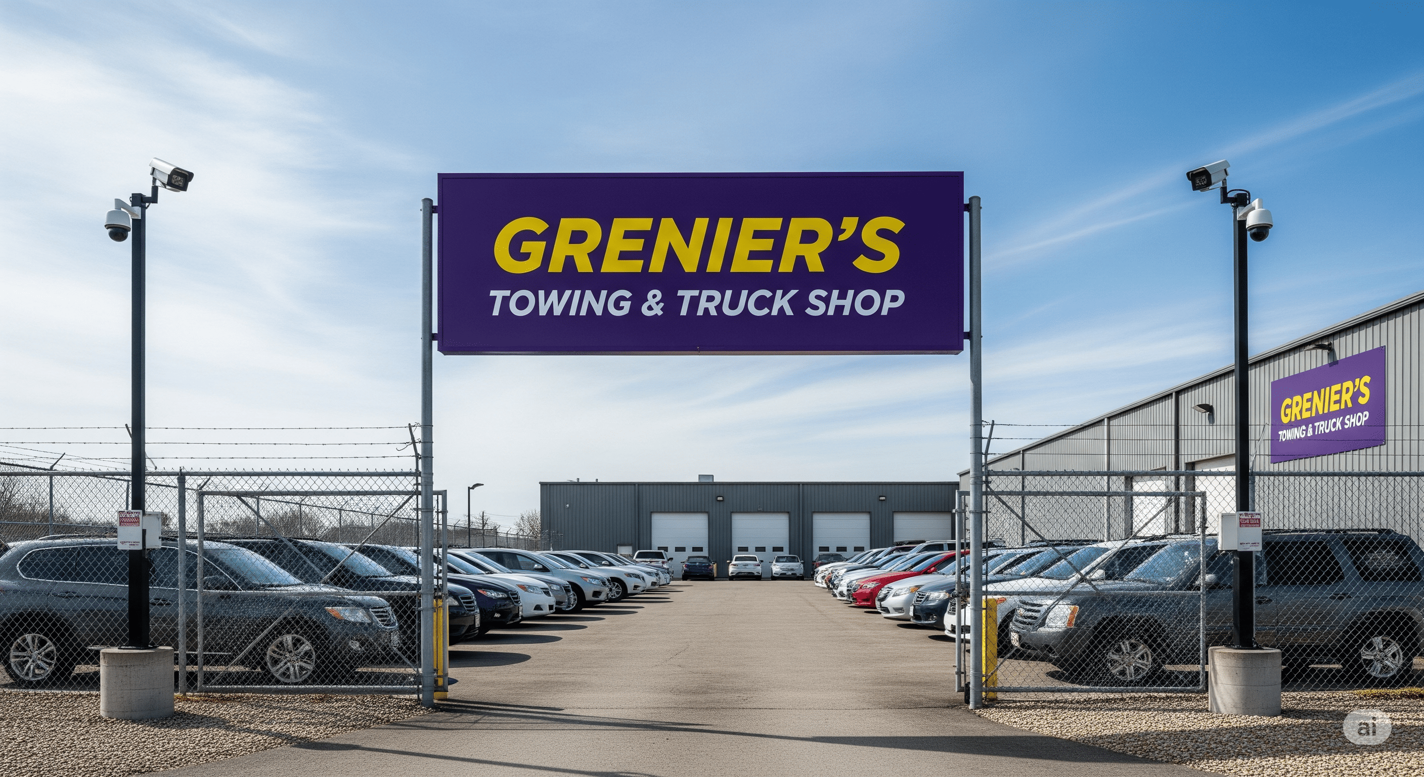 Understand the process of storing your vehicle after towing, including security measures and retrieval options, with Grenier's expert storage services.